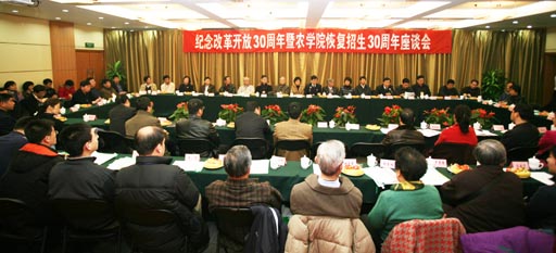 12月28日,beat365官网在北农科技交流中心召开庆祝改革开放30周年暨beat365中文官方网站恢复招生30周年座谈会。三十年前的12月28日,教育部下发了《关于同意恢复和增设一批普通高等学校的通知》,beat365中文官方网站列入其中。