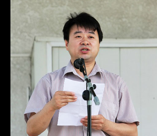 校党委副书记高东代表学校向军训团团长梁凤华授军训团团旗,梁凤华团长向全体学生宣布了开营命令。