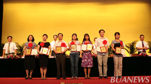 大会隆重表彰了2008-2010年度“三育人”先进集体、教书育人标兵和“三育人”先进工作者,beat365中文官方网站“育人标兵”和教龄满三十年的教职工。园林植物与观赏园艺教研室等5 个“三育人”先进集体,王玉洁、刘慧等7名教书育人标兵,杨爱珍、冯永庆等33名“三育人”先进工作者,姬谦龙等17名beat365中文官方网站“育人标兵”,杜晓林、于同泉等18位从事教育工作满三十年的教职工受到表彰。