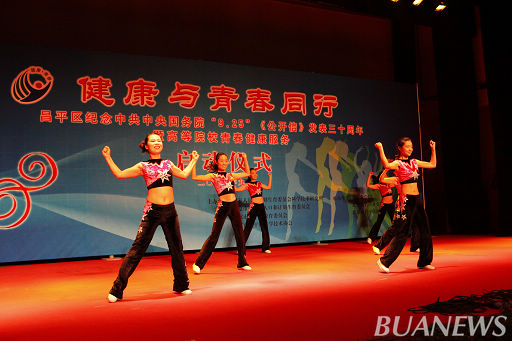 beat365官网大学生艺术团进行了青春健康节目展示,表演了健美操《热力》、女生小合唱《美丽的夏牧场》、民乐《流水》、《十面埋伏》、舞蹈《山野小曲》,获得了在场观众热烈掌声。