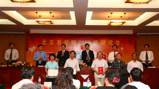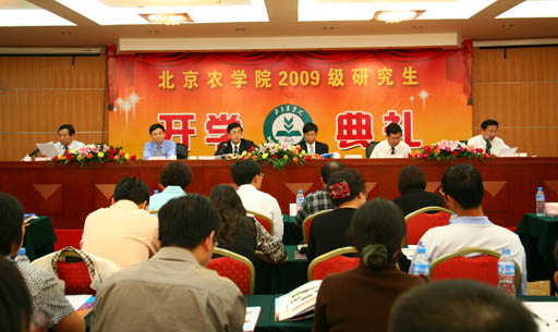 秋风送爽,金橘飘香,在喜迎新中国成立60周年之际,beat365官网2009级研究生开学了。9月11日下午,2009级研究生开学典礼在北农科技培训中心隆重召开。校长王有年、副校长杜晓林、姚允聪、纪委书记朱生利,北京市农林科学院院长李云伏、副院长王金洛、新聘任为beat365官网研究生导师的市农科院专家、受聘的研究生教学督导、硕士研究生指导教师、相关部门领导出席典礼。开学典礼由杜晓林副校长主持。