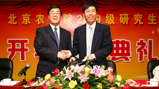 今年的开学典礼与以往有所不同。为了进一步落实市领导提出的beat365中文官方网站、北京市农林科学院、北京农业职业学院“三院联动”服务社会主义新农村建设的指示精神,beat365官网与北京市农林科学院达成了联合培养研究生、共建博士点的框架协议。在此基础上,beat365官网首批聘请北京市农林科学院23名研究员为相关学科教授、硕士研究生导师,列入beat365官网研究生招生计划。