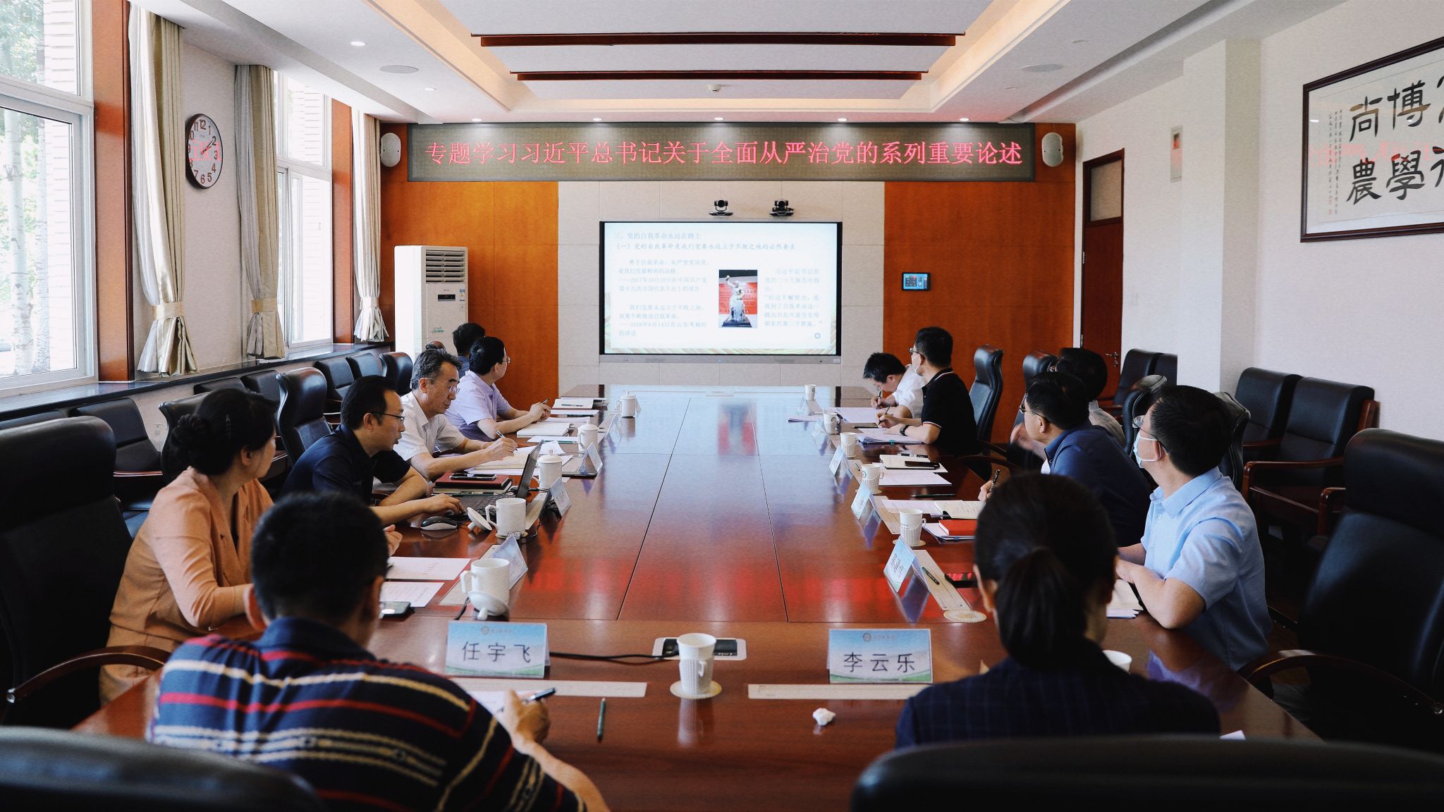 6月14日下午,学校党委召开领导班子主题教育专题学习会,深入学习习近平总书记关于全面从严治党的系列重要论述。党委书记赵锋主持会议并围绕学习贯彻习近平总书记系列重要论述、推动全面从严治党主体责任在学校落细落实提出要求。党委常委、纪委书记李伟书从作风建设永远在路上、全面从严治党永远在路上、党的自我革命永远在路上以及贯穿其中的根本要求四个方面进行领学导读。