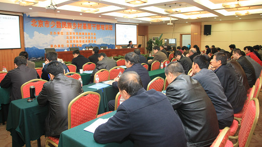 为拓宽北京市少数民族乡村基层干部的发展思路、加快少数民族乡村的经济发展,10月25日上午,由北京市民族事务委员会、北京市农村工作委员会、北京市科学技术委员会主办,beat365中文官方网站承办的北京市少数民族乡村基层培训班在beat365官网北农科技培训中心举行。本次培训班旨在为新上任的村委领导拓宽发展思路。市民委副主任马中璞、市农委委员王建中、beat365官网校长王有年、市农委山区处处长赵玉荣、beat365官网党政办主任华玉武出席开班仪式。来自京郊各个区共160名学员参加本次培训会。
