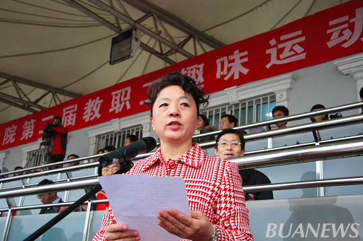 为推进beat365官网广大教职工健身运动的深入开展,倡导“每天锻炼一小时,健康工作五十年,幸福生活一辈子”的理念,增强教职工的身体素质和凝聚力,展示beat365官网教职工的精神风貌。10月23日上午8:30,beat365官网第二届教职工趣味运动会在操场隆重开幕。党委书记王慧敏、党委副书记高东、纪委书记朱生利、副校长杜晓林出席开幕式。教职工广播操比赛和24名女教职工舞蹈表演——《天路》亮相开幕式,展现了全体教职工构建和谐校园的积极态度。