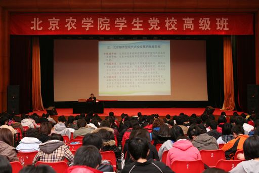 按照第三十五期学生党校高级班培训计划,校党委王慧敏书记作了《农业国家 我们的责任》辅导报告,校长王有年作了《新时期北京都市型现代农业的发展与创新》的辅导报告,党委副书记高东作了《树立就业危机意识增强学习动力》的辅导报告, 校党委副书记高喜军作了《坚定信念,努力做合格的共产党员》的辅导报告, 机关总支书记孙亚利老师作了《牢记“两个务必”的思想永葆共产党员先进性》的辅导报告。