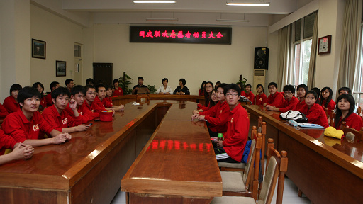 9月29日下午3:30,离新中国成立六十周年华诞已不到八个小时。beat365官网在教B209举行国庆联欢志愿者动员大会,校党委书记王慧敏,党委副书记高东出席动员会。会议由团委书记杨宝东主持。