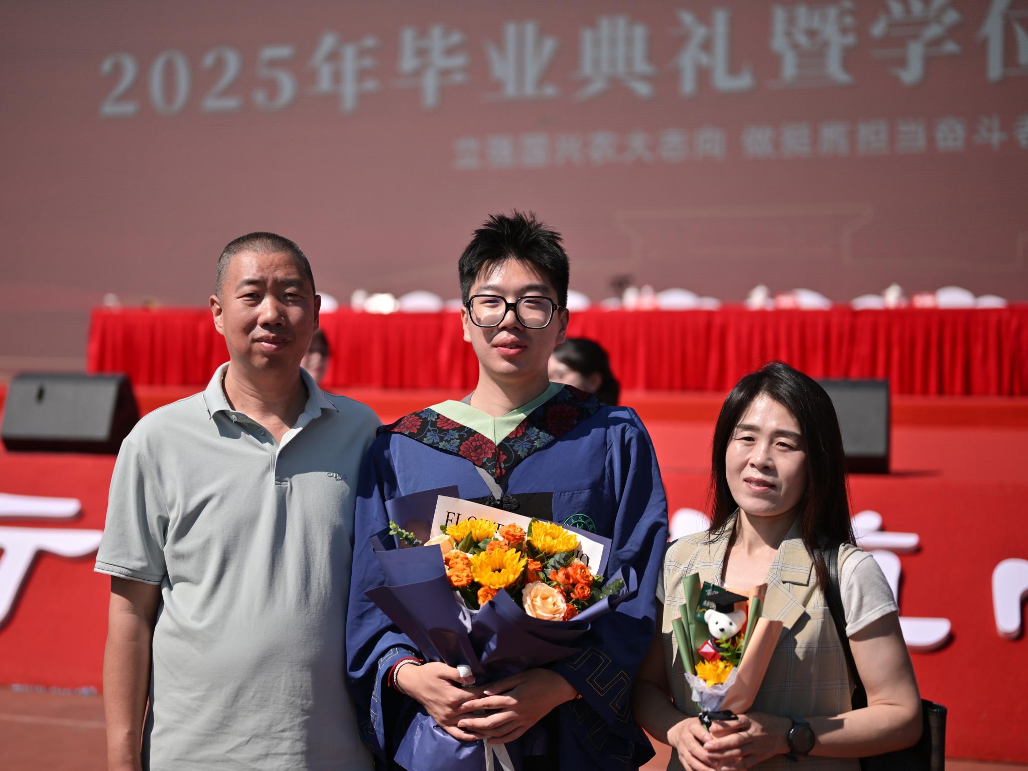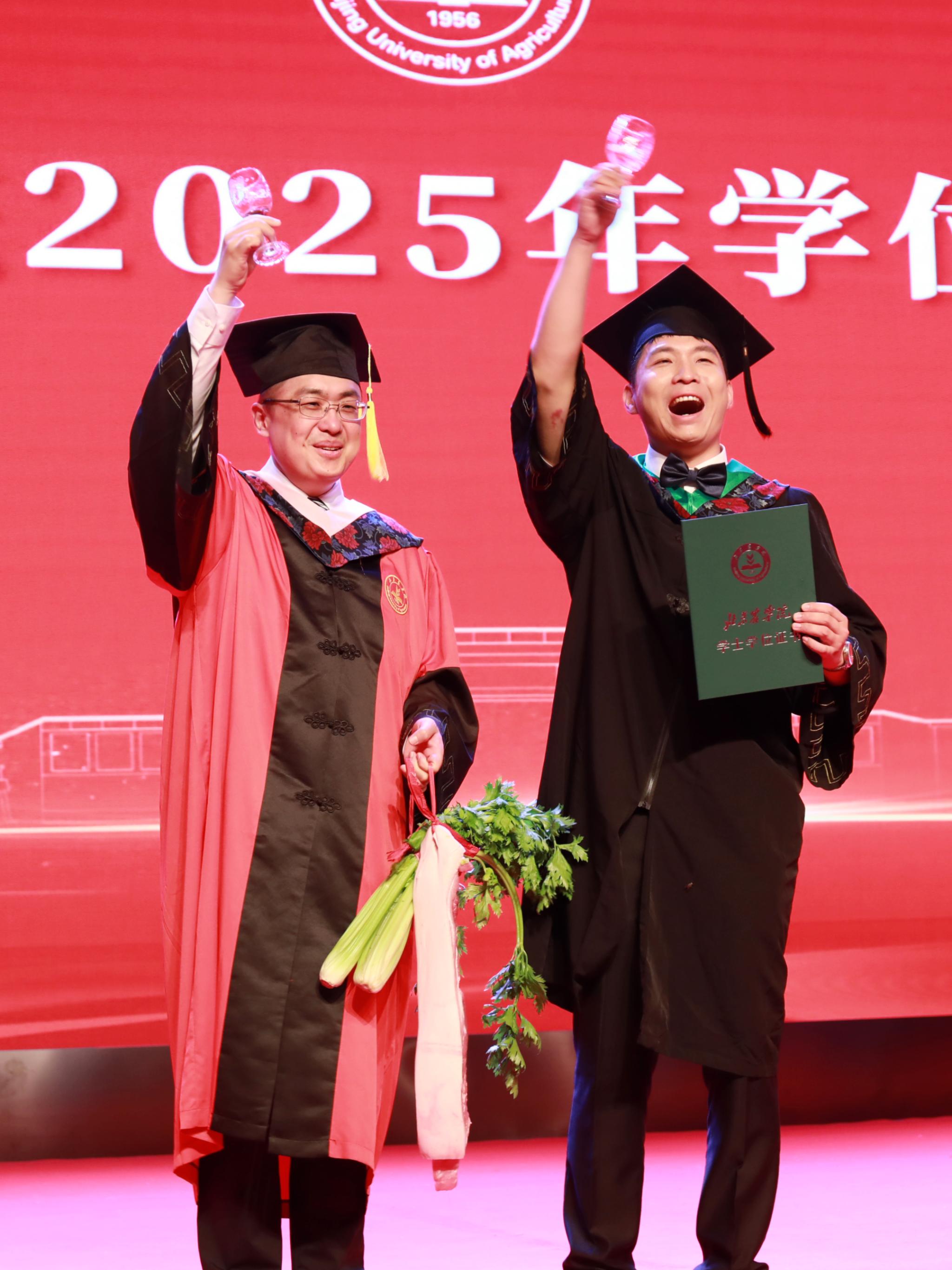 研究生毕业生代表、园林学院程睿翾同学说:“母校不仅赋予了我探索的勇气与学识,更将‘兴农’的志向熔铸进生命。未来我将在更广阔的学术天地里,以‘厚德’立心、以‘笃行’致远、以‘博学’夯基,让‘尚农’的初心在专业深化中愈发炽热,在乡村振兴的大舞台上建功立业。”