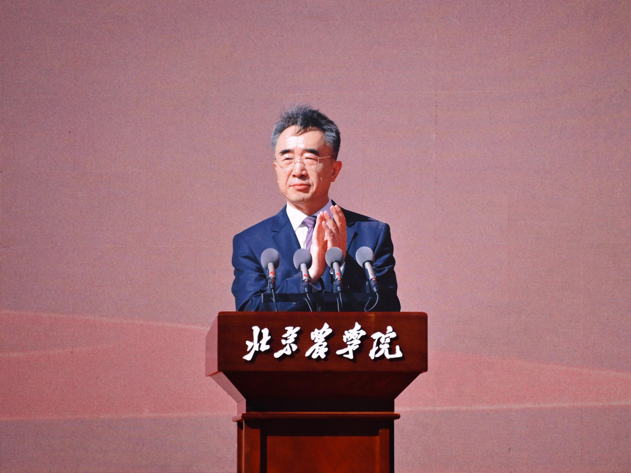 本科毕业生代表、生物与资源环境学院王梓豪同学代表同学们感谢学校四年的精心培养和老师们的悉心教导。他表示,今后将秉持“实干创先”的精神,立志成为一名懂农业、爱农村、爱农民的“新农人”,将论文写在京华大地上,以实际行动为乡村振兴贡献青春力量。