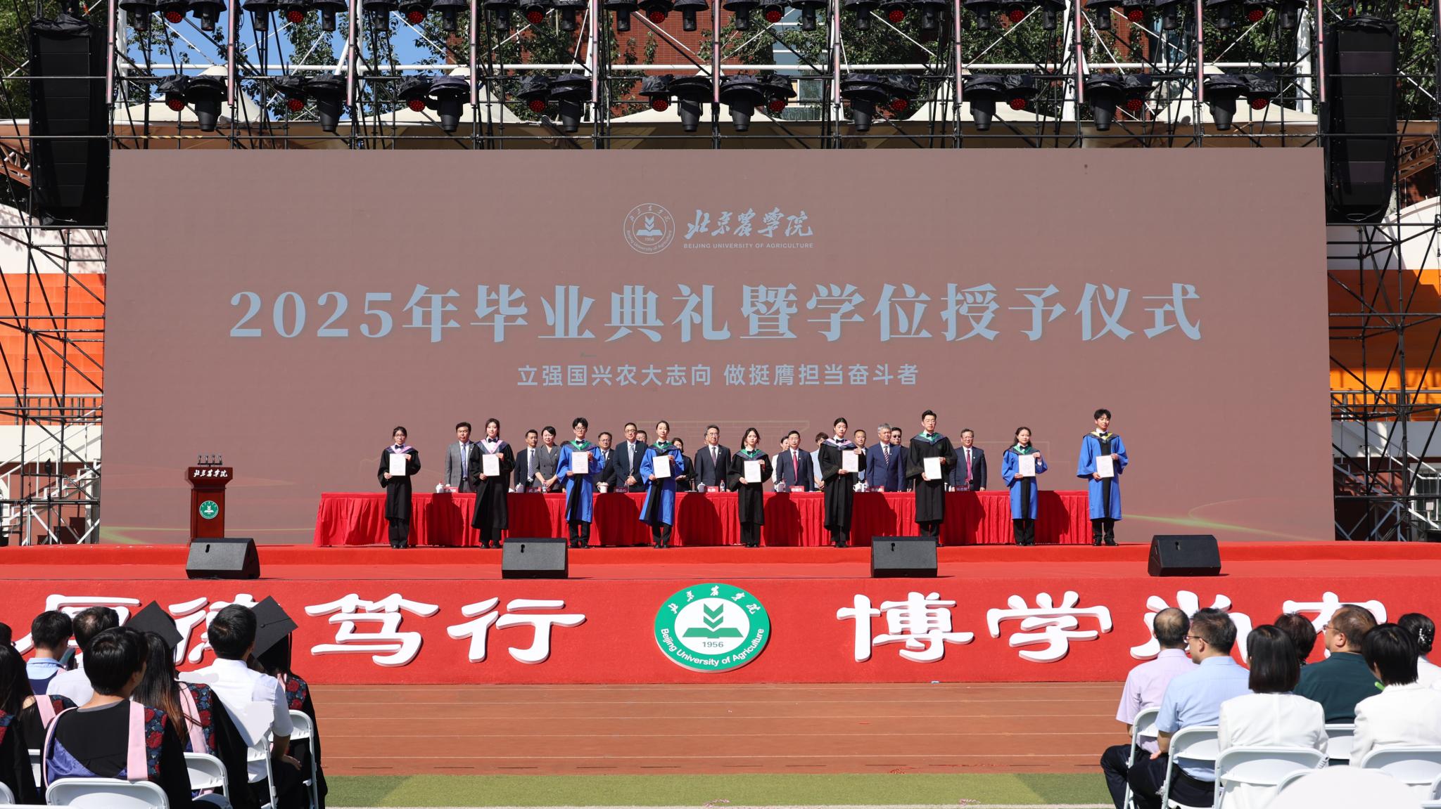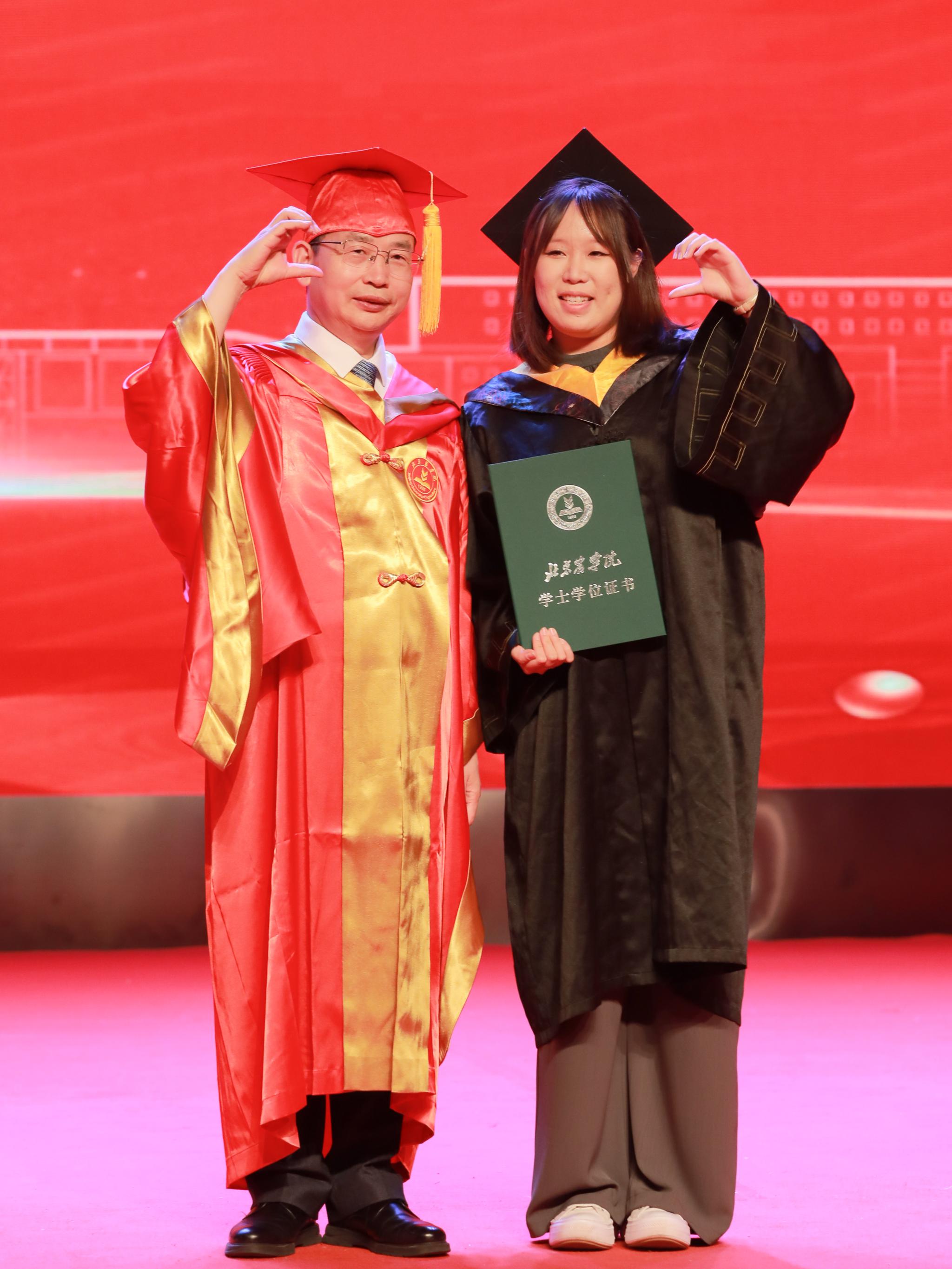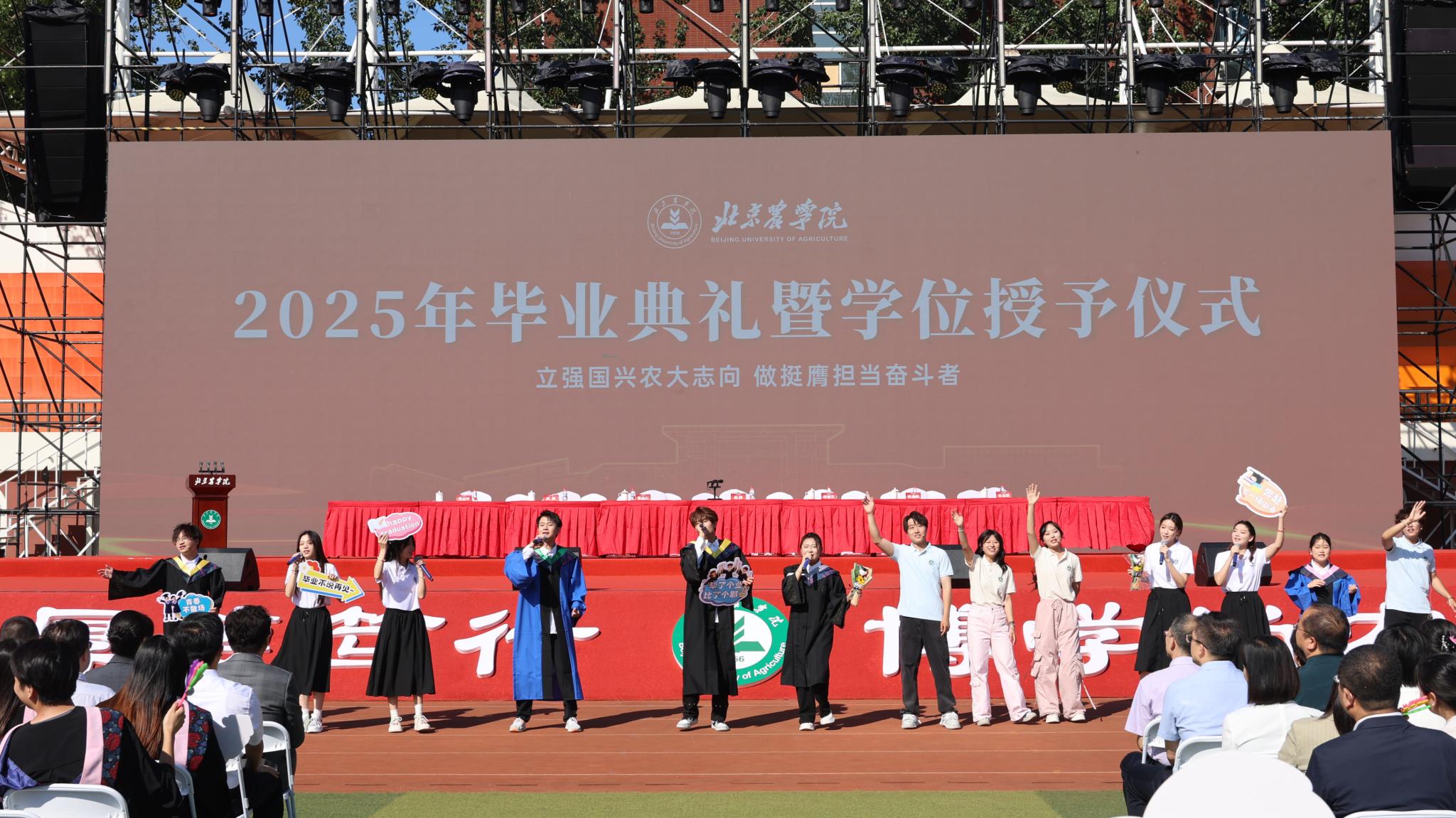 段留生代表学校师生员工为全体毕业生送上殷殷嘱托,希望同学们以“厚德”立身,奋进新时代,谨记校训精神,于平凡中、细微处书写自己的答卷,乘时代之风、翻后浪之勇,让青春在“国之大者”中熠熠生辉、绽放光芒;以“笃行”筑基,淬炼新成长,把艰苦环境、艰巨任务作为磨炼自己的机遇,把肯吃苦、敢吃苦、能吃苦当作成就更好人生的选择,不畏艰辛、笃行实干,在知行合一中蹚出属于自己的精彩篇章;以“博学”致远,学习新本领,践行动态学习、终身学习理念,不断丰富和更新知识体系,持续精进新技能、锻造硬本领,勇做时代的“弄潮儿”;以“尚农”为志,展现新作为,牢记“北农人”身份,以“尚农”之心滋养情怀,以“强农”之行践行担当,在各自岗位顽强扎根、蓬勃生长,汇聚成强国兴农的磅礴力量。