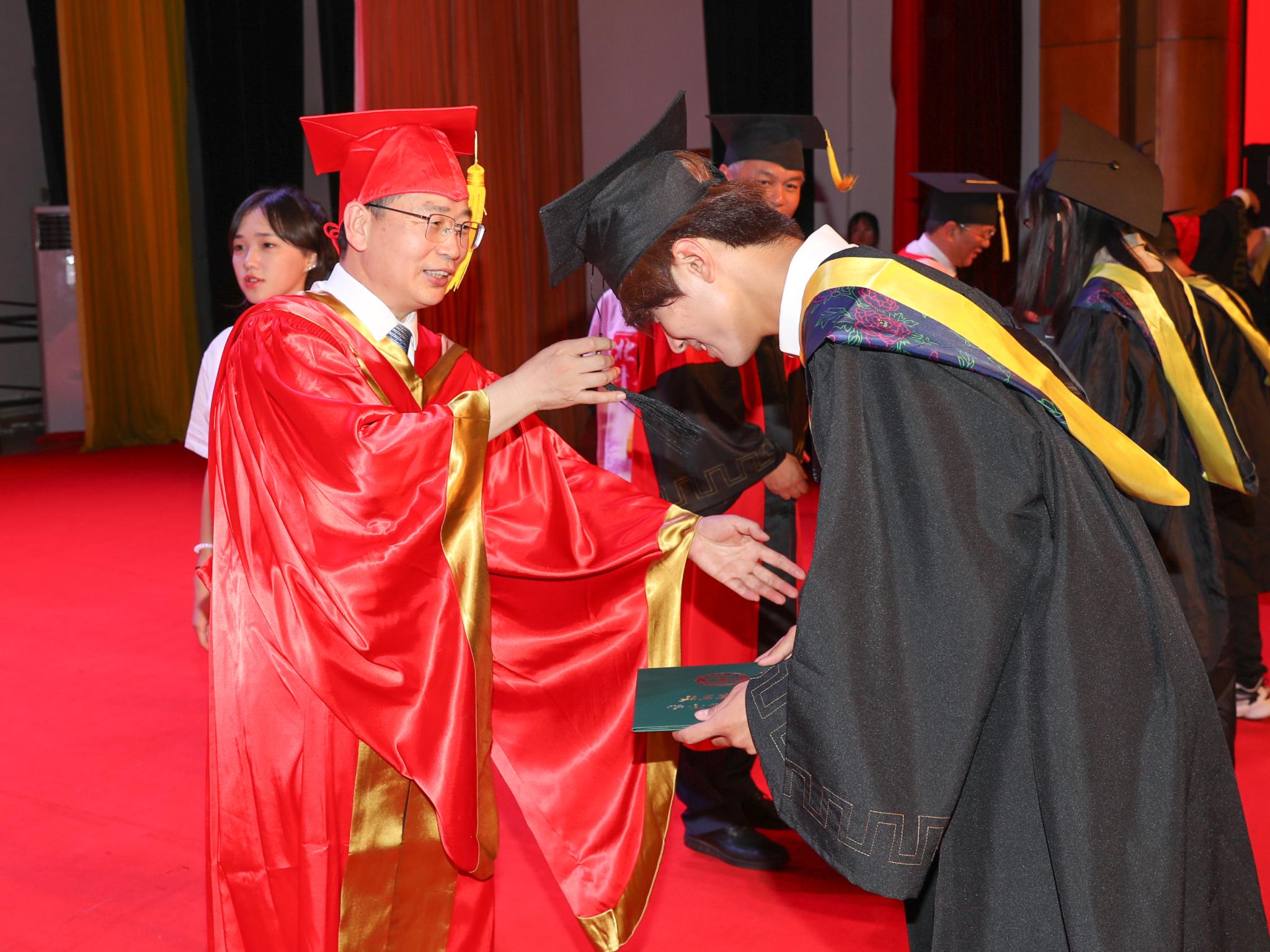 校领导为优秀毕业生代表颁发荣誉证书,希望同学们立强国兴农大志向,做挺膺担当奋斗者,在绘就强国建设和民族复兴的壮美画卷中绽放青春光彩、书写人生华章。