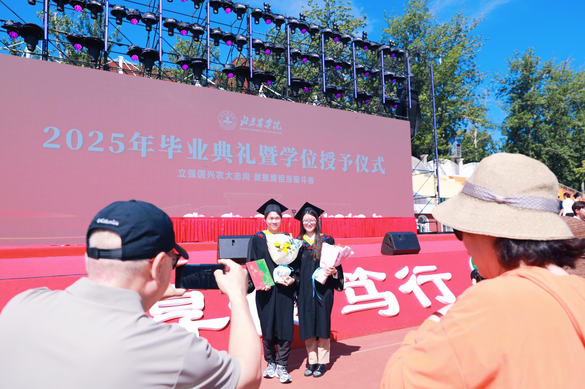 毕业生身着学位服依次庄重地走上主席台,校领导及学院领导满载祝福与嘱托为毕业生一一拨正流苏,愿北农学子在新征程上继续创造属于自己的青春华章!