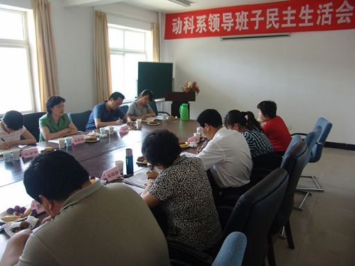 系党总支书记鲁琳、系主任吴国娟、副主任郭勇、靳晶先后做了发言。发言紧紧围绕深入贯彻落实科学发展观,围绕“创特色学科,建和谐动科”这个活动主题,重点查找了系领导班子及其个人不适应、不符合科学发展观的思想观念,影响和制约动物科学技术系科学发展的突出问题,党性党风党纪方面的突出问题以及制度机制方面存在的问题等进行了深刻的自我剖析,查找了原因,提出了努力方向和改进措施。之后,系领导班子成员认真开展了互评,坦率真诚、氛围和谐、严肃热烈。