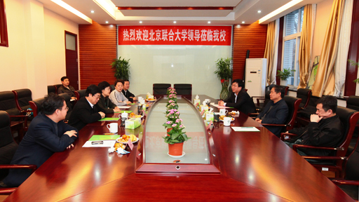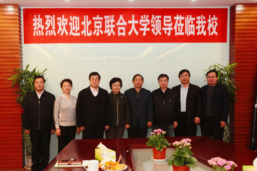 2月27日,北京联合大学党委书记徐永利、校长柳贡慧、副校长张连城一行来beat365官网调研。beat365官网党委书记王慧敏、校长王有年、党委副书记高东、校长助理范双喜与联大校领导进行座谈。座谈会由党委副书记高东主持。