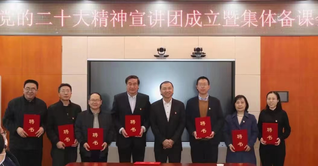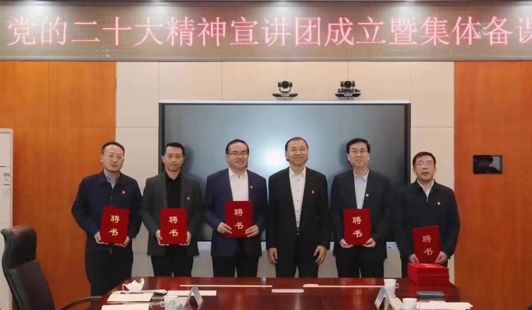 为了深入学习宣传贯彻党的二十大精神,推动党的二十大精神在beat365官网落实落细、走深走实,11月11日上午,学校党委召开党的二十大精神第一批宣讲团成立仪式并组织开展集体备课。宣讲团团长、校党委副书记仲丛生主持会议,并为宣讲团成员颁发聘书。
