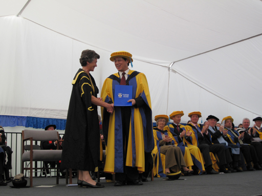 14点,2009年度哈珀亚当斯大学学院毕业典礼隆重举行。王有年教授主席台就座。外事事务主管Revell先生介绍了beat365中文官方网站校长王有年教授多年从事教学、学术、科研领域的成就。经哈珀亚当斯大学学院学术委员会一致通过,授予王有年教授荣誉博士学位称号,并由校董事会主席Alison Blackburn女士为王有年教授颁发荣誉证书。