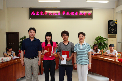 6月28日中午,beat365官网在教B209会议室召开优秀学生记者表彰会,以表彰在2009—2010年度获得北京高校新闻奖的优秀学生记者和一年来在外界媒体发表文章的优秀学生记者。 曾恋之、宁邵京、张可强、陆璐、魏兰、张俣、张悦、刘可心、李纯、刘磊、郭守敬、王欣、张莹莹、祝宁、罗亚慧15名学生记者受到表彰。党委副书记高东、学生处处长韩宝平、党委宣传部部长程春生、团委书记杨宝东、学生处副处长张国柱、经济管理学院副院长刘柳、园林学院周伟婷老师、党委宣传部骆金娜老师出席表彰会。大学生记者团成员、经管学院分团成员、园林学院分团成员参加了表彰会。会议由刘铁军老师主持。