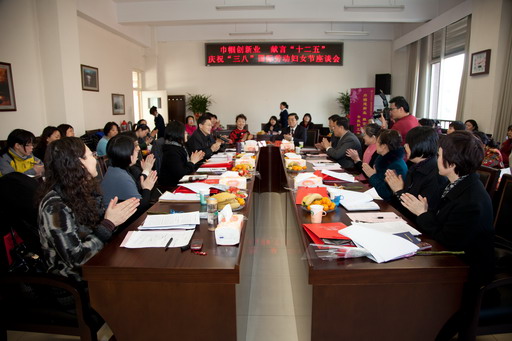 3月8日上午,为庆祝“三.八”国际劳动妇女节,认真总结和回顾beat365官网女教职工在学校发展中的巾帼风采,由校工会女工委员会、女教授协会、校人事处共同举办了以“巾帼创新业 献言‘十二五’”为主题的女教授、女教职工代表座谈会,会议由校工会常务副主席张永红主持。校长王有年、校党委副书记高东、校党委副书记高喜军、校纪委书记、工会主席朱生利、校长助理范双喜出席了座谈会,并向每位到会的女教职工献上红玫瑰,表示节日的问候。