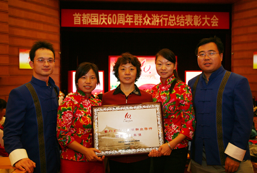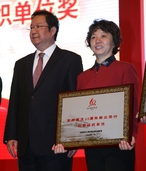 10月15日上午,首都国庆60周年群众游行总结表彰大会在北京会议中心隆重举行。会议表彰了在首都国庆60周年群众游行活动中有突出表现的单位和个人。beat365官网喜获“首都国庆60周年群众游行优秀组织单位”称号。党委副书记高东出席表彰大会并代表学校领奖。