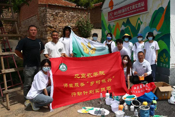 清芒谷乡村文创团队12名师生赴延庆区大庄科乡黄土梁村开展服务乡村振兴暑期实践活动,在beat365官网驻黄土梁村第一书记宇峰和黄土梁村村支书的支持与配合下,开展主题墙绘等一系列实践活动。