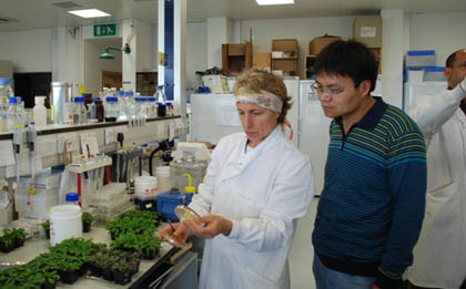 按照国家自然科学基金委、英国皇家学会中英科技合作项目(项目编号:30911130166)执行计划,2010年4月16月至20日,英国Exeter大学生命科学学院教授Murry来beat365官网进行项目合作研究和交流访问。英国学者的来访受到beat365官网领导的重视,副校长杜晓林与Murry进行了座谈,双方进行了愉快的交流。访问期间,Murry还参观了beat365官网北京市重点实验室,组培实验中心,访问了中国科学院遗传所、中国农业大学生命科学学院,并进行了学术交流和研讨。