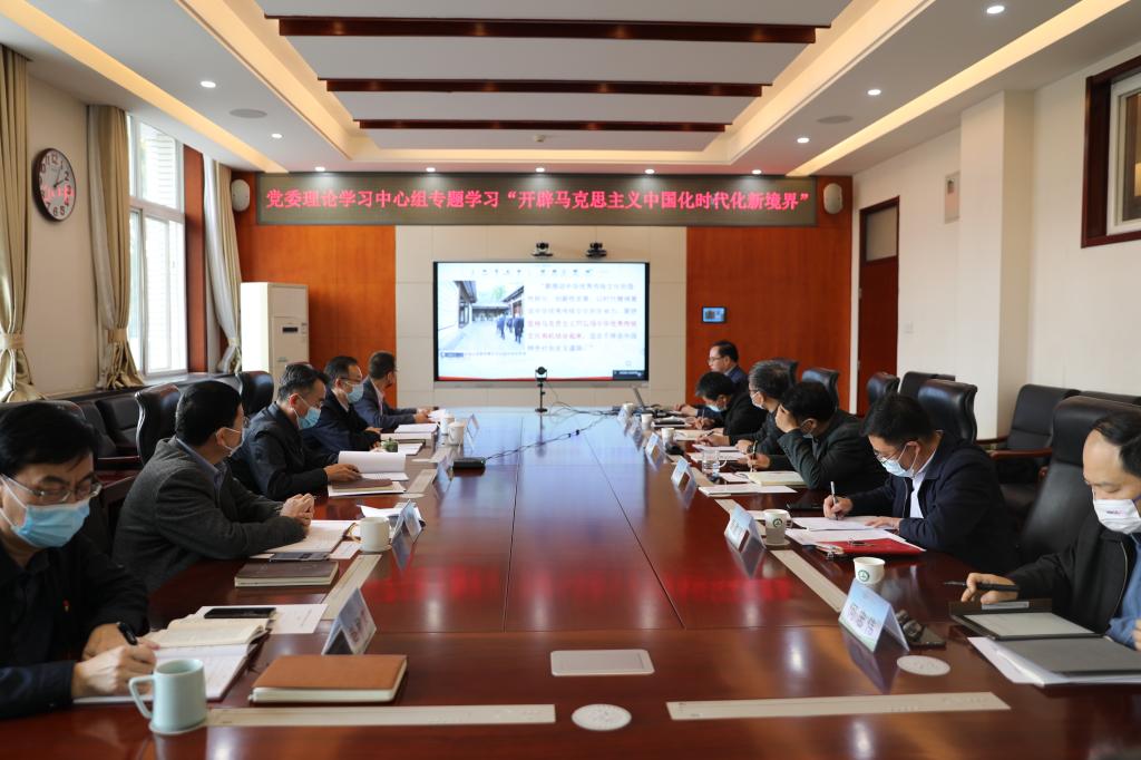 11月22日下午,学校党委理论学习中心组召开学习扩大会,专题学习党的二十大报告中关于“开辟马克思主义中国化时代化新境界”重要内容。会议由党委书记赵锋主持。学校“党的二十大精神宣讲团”副团长、马克思主义学院院长华玉武围绕主题进行领学和解读。