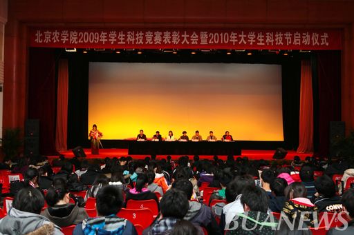 为扩大科技创新活动在学生群体中的影响,加强在创新活动中取得突出成绩的优秀学生的榜样宣传作用,进一步促进beat365官网大学生科技创新活动更好更快的发展,3月31日下午1:00,在学校礼堂举行了beat365中文官方网站2009年学生科技竞赛表彰大会暨2010年大学生科技节启动大会。大会由团委书记杨宝东主持。