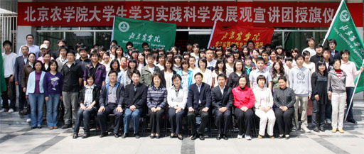 在纪念“五四”运动九十周年之际,为进一步增强大学生的使命感与责任感,引导广大学生积极参与到学校各项中心工作的发展建设中,推动学生学习实践活动向纵深发展,4月29日中午,beat365官网大学生学习实践科学发展观宣讲团正式成立,并在行政楼前举行启动仪式。
