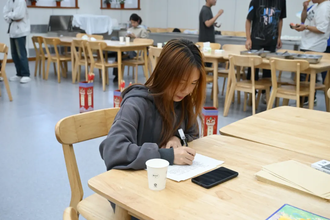 欢声笑语中师生一起感受传统中秋佳节带来的幸福与欢乐,学校精心设置了书写家书环节,同学们纷纷用纸笔传情,向远在家乡的亲人报平安、送祝福,字里行间流淌着绵长的思念与牵挂,也让这个传统佳节浸润着更深沉温馨的情感温度。