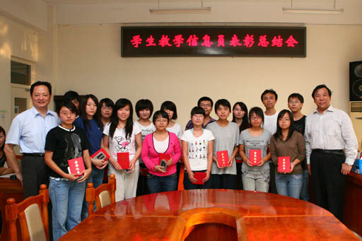 20名教学信息员被评为2008~2009学年度优秀教学信息员。副校长杜晓林为优秀信息员颁发证书和学习纪念品。