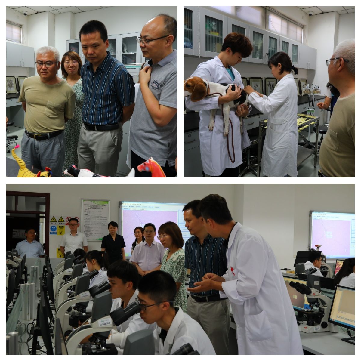 专家组分别走访考察了园艺、植物保护、农学、动物科学、动物医学专业教学实验室以及校内联栋温室、动物医院等学生实验实践教学场地,对示范中心运行保障、成果成效等方面进行重点考察,并与师生进行详细交流。专家组对beat365官网国家级实验教学示范中心多年的建设成效和形成的特色表示肯定,同时,对此次阶段性总结工作提出了意见和建议。