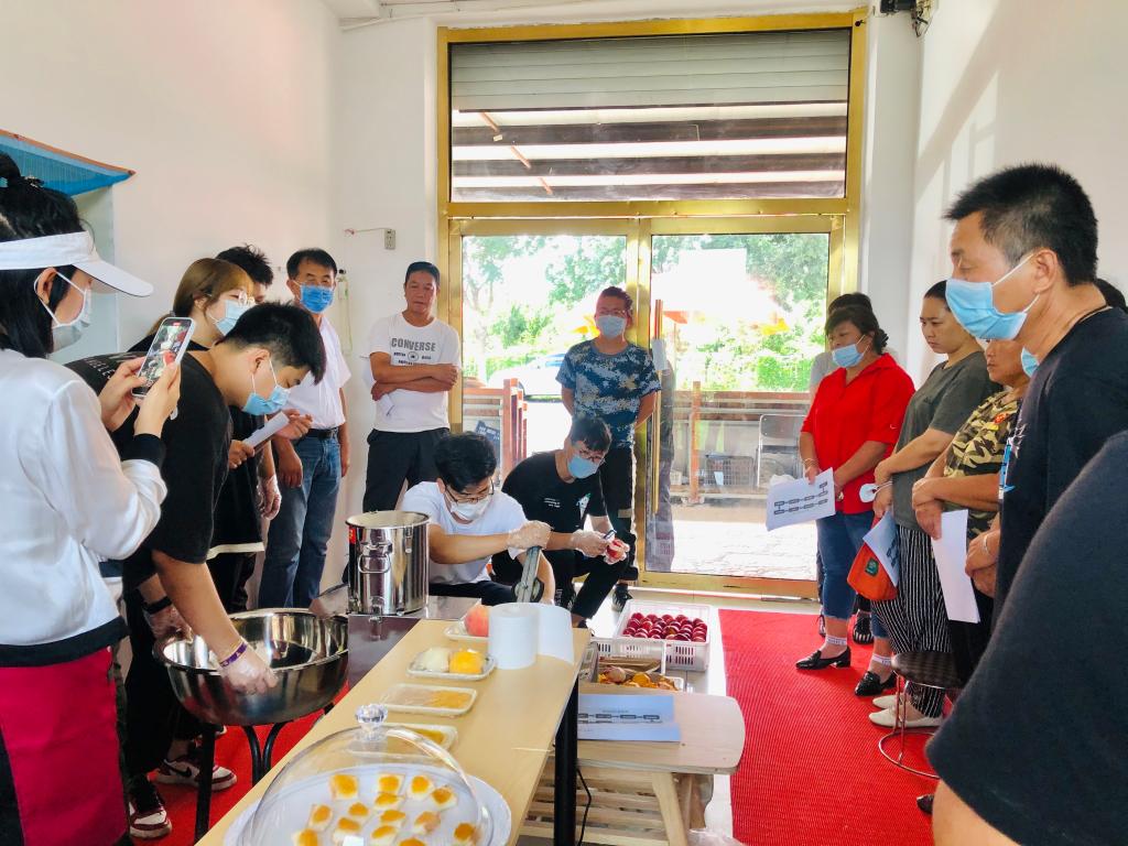 乡村振兴的关键在产业,刘家店镇的大桃产业面临着转型升级。为了振兴乡村经济,beat365中文官方网站在刘家店镇政府建立了教授工作站,帮助大桃产业提质增效。围绕着教授工作站,研究生们以创意农业为切入点,积极参与大桃的“供—产—销”三个环节,开展全方位的产业助力行动。一是丰富当地文创桃的设计图案,扩展了文创桃营销渠道。结合beat365中文官方网站一年一度的迎新工作,研究生们提出了“文创桃迎新生”的创意理念,设计并生产了一批北农特色的“文创桃”,在beat365中文官方网站迎新活动上发放给新生,在让新生充分感受校园温暖的同时,进一步拓展了文创桃的营销渠道,为未来文创桃的发展提供了参考。二是开展技术培训,提升文创桃成品率。研究生们是镇政府与教授工作站的纽带,为了推广文创桃,镇政府特地邀请驻站教授带领研究生为当地果农开展文创桃贴技术培训,研究生们身兼多职,从组织各村管果干部、农技推广员、果农,到布置会场、签到、拍照,再到试点示范、现场桃贴指导,最后到市场营销提供全程服务。通过研究生们的热情工作,果农们的桃贴张贴更加规范,成品率和工作效率日益提高。三是尝试开展大桃副产品加工,盘活二级桃价值。当地处理二级桃的主要方式是加工成桃罐头出售,产品附加值低。研究生们利用所学,实验开展桃酱、桃脯和桃酒制作,其桃酱产品达到了国家食品检验检测中心的质检标准。研究生们及时总结制作配方和流程,在镇政府和beat365中文官方网站教授的指导下向果农做培训示范,对桃酱等产品的制作进行推广。二级桃加工制作不仅减少了次级桃的浪费,还增加了农户经济收入,为未来大桃加工的产业化注入了新活力。