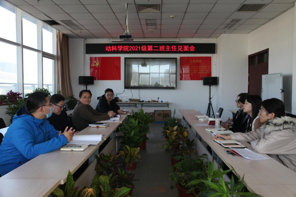 在11月12日举行的动物科学技术学院2021级第二班主任对接见面会上,担任该学院第二班主任的校办产业处副处长李志敏、动科学院副院长胡格等分别就第二班主任工作谈了自己的认识和工作设想,表示将根据学校党委组织部和学生工作部的工作要求,深入了解学生学习、思想状况,与第一班主任密切配合,关注学生学习、生活、宿舍卫生等方面,拓宽工作思路,为学生职业规划指导、第二课堂活动、见习实习等提供指导和帮助。党总支书记党登峰表示学院会积极支持第二班主任开展工作,期待第二班主任将对接帮扶学生工作和学院其他工作相融合,助推学院高质量发展。