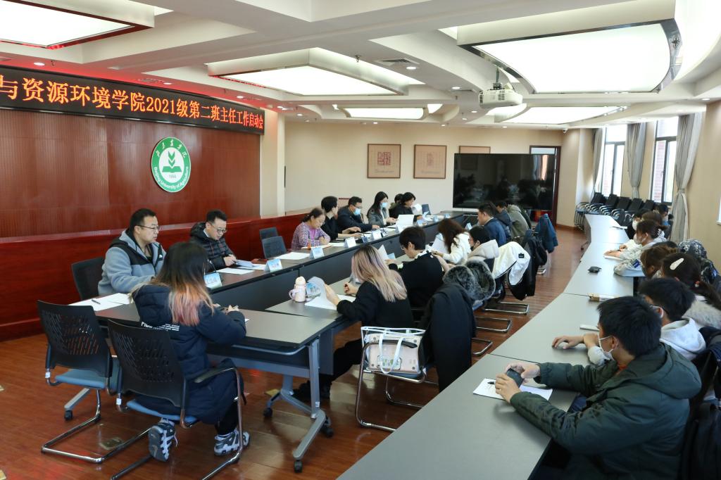 生资学院2021级第二班主任启动会上,学院党总支副书记俞涛介绍了第二班主任工作实施计划:每个学期将组织一次特色班会活动,院学生会权益部定期收集学生的意见建议反馈给第二班主任,第二班主任和学院一起努力为学生解决实际问题。