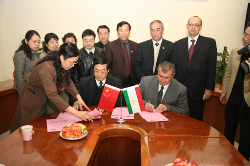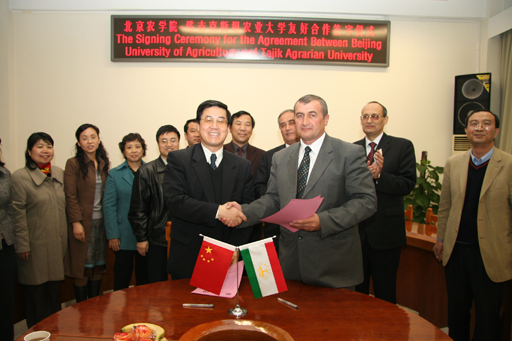 为了进一步加深两校的合作和交流,院长教授与塔吉克斯坦农业大学校长萨托洛夫教授还于30日下午代表两校,在教B209签署了友好合作协议,副院长杜晓林、外事办及有关同志出席了会议。