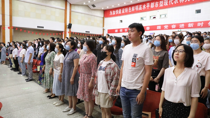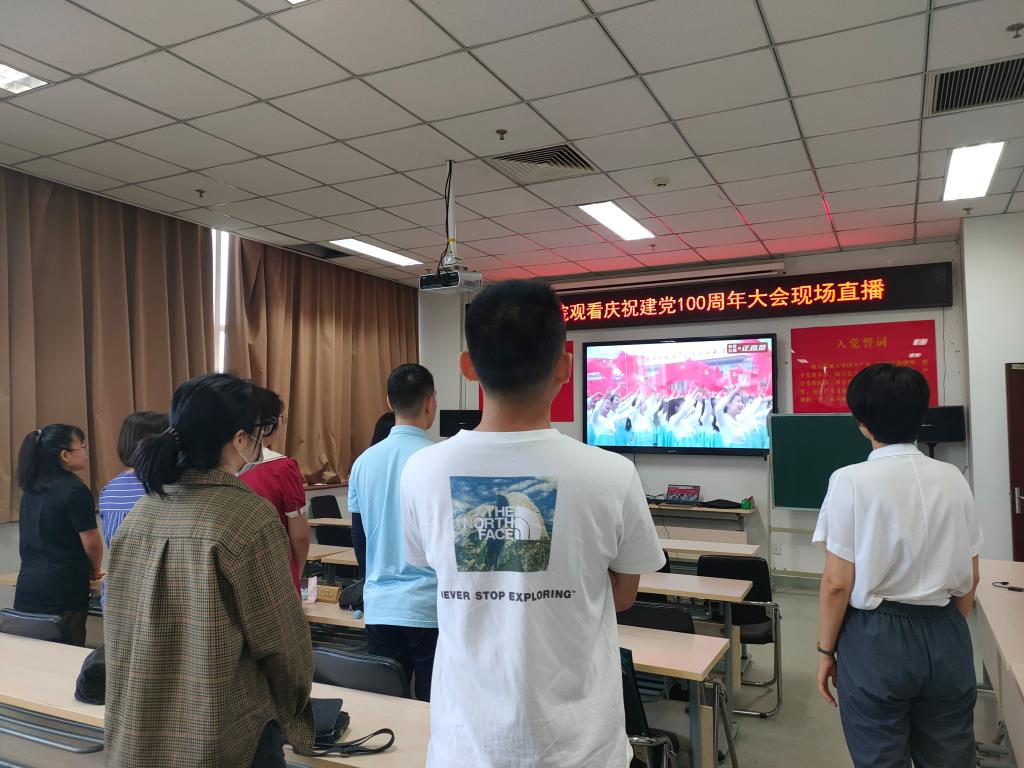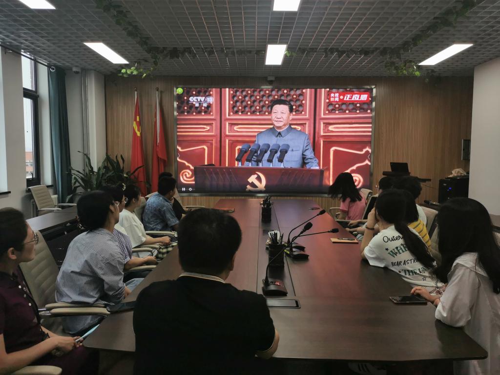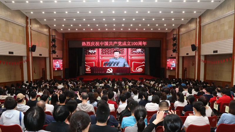 7月1日上午8时,庆祝中国共产党成立100周年大会在北京天安门广场隆重举行。学校组织750余名师生党员在大礼堂集中观看庆祝中国共产党成立100周年大会全程直播,认真聆听中共中央总书记、国家主席、中央军委主席习近平发表的重要讲话,共庆中国共产党百年华诞。此外,学校还通过室外电子屏全程播放庆祝大会,通过宣传展板、微景观营造喜庆氛围,各二级党组织也通过多种方式组织师生集体观看直播。