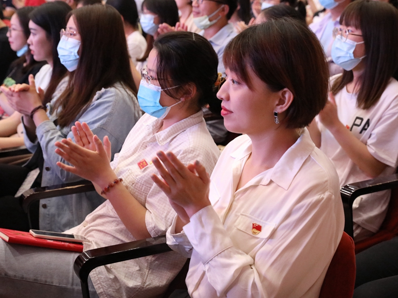 文法与城乡发展学院党总支副书记李云乐说:“今天在学校礼堂观看建党100周年庆祝大会直播,心情激动,感慨万千。没有中国共产党,就没有新中国。建党一百年,是波澜壮阔、跌宕如歌的一百年,是党与人民心连心、休戚与共的一百年。以习近平总书记为核心的中国共产党正焕发出更蓬勃的生机活力,将领导全国人民,在新时代开启新篇章、作出新作为、取得新成就,继续奏响共和国在新时代的有力旋律。中国共产党在人民的心中分量很高,学生入党的热情日益高涨,越来越多的大学生成为党组织的一员。今天我们共同为党庆生,见证这一伟大时刻。祝福祖国更加繁荣昌盛!”
