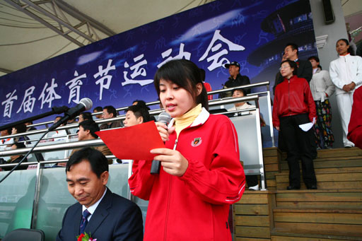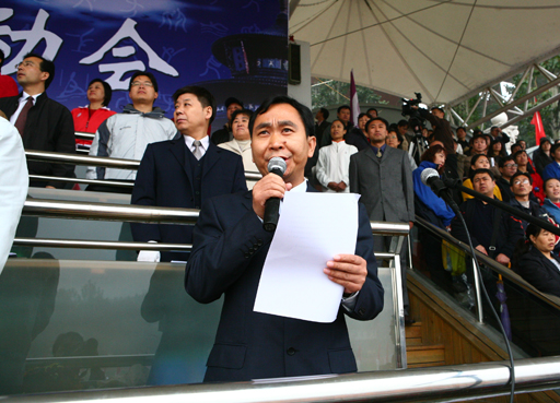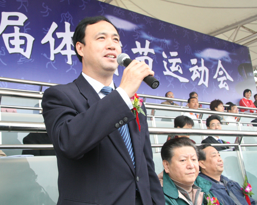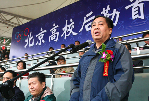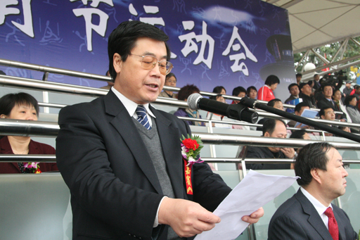 北京市教委副主任、北京高校后勤首届体育节运动会组委会副主任杜松彭致开幕词。