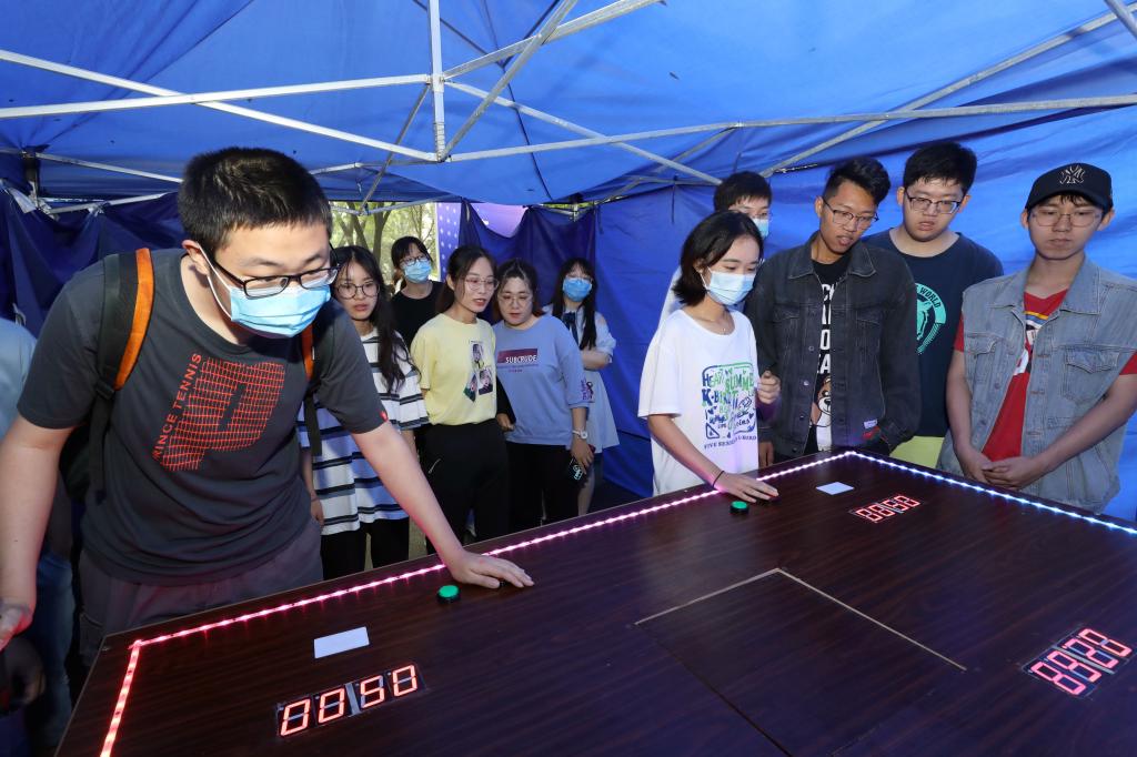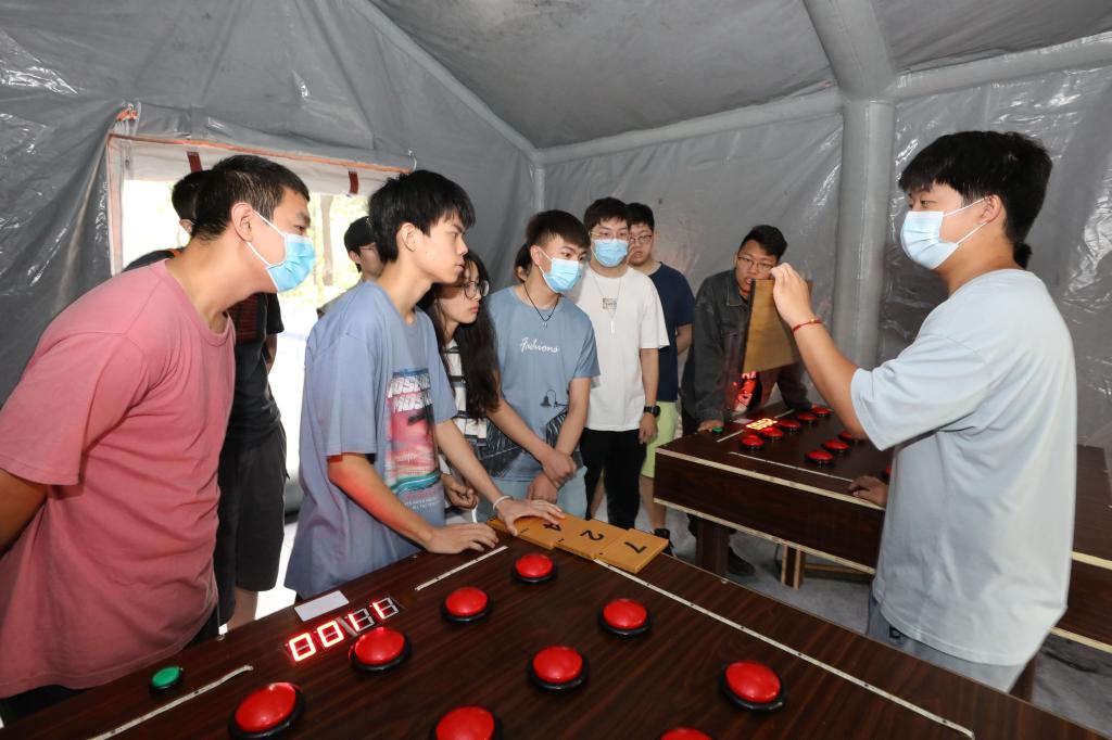 本次沉浸式体验活动选择了刷单和网络诈骗的形式,因为这两种是高校诈骗案中最常见的形式。同学们纷纷体验这次沉浸式防诈宣传,在工作人员的引导下,同学们分为了两组进行游戏。在前两座帐篷之中,同学们分别通过“比反应速度”等小游戏赢取了积分,虽然大家在一开始都显得有些云里雾里,但还是很快的适应了节奏,并准备进入到第三座帐篷中继续赢取积分。进入到第三座帐篷之中,一位笑眯眯的工作人员接待了大家,并向大家讲解了这个帐篷的游戏方式——打地鼠。“打地鼠大家都玩过吧?一会儿每个小组要齐心协力在这个大桌子上玩打地鼠,打赢三轮就可以获得大量的积分。”虽然有的同学警惕性很高,但还是参与到游戏当中。令人意外的是,两个小组都输了,而且积分都被清零了。这时工作人员用严厉的口吻向大家说道:“同学们,刚才你们经历到的就是‘刷单’诈骗!这个打地鼠被设计得非常难,基本上是打不赢的!在前两轮游戏中,通过简单的游戏获取积分来模拟诈骗中前期你所赚取到骗子给予的甜头,而在这轮游戏中,我们模拟的则是最后一轮的大单,骗子会说‘我们这有个大单,投入1万回报2000呢!’大多数同学可能就会相信,进而受到诈骗,血本无归!”