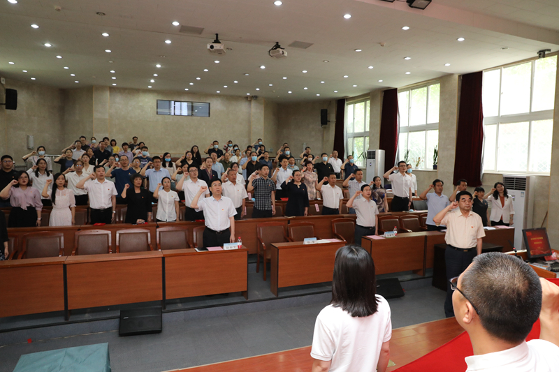 会上,举行“新党员入党宣誓、老党员重温誓词”仪式,杨军书记领誓。