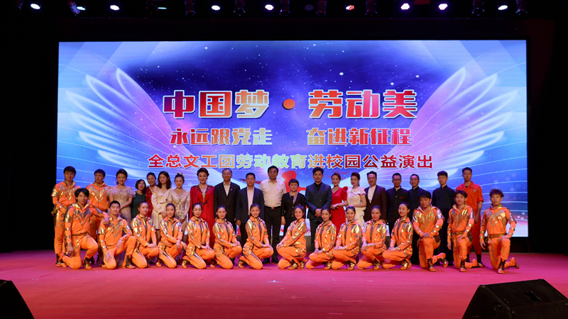 在中国共产党建党100周年来临之际,“中国梦•劳动美—永远跟党走奋进新征程”全总文工团劳动教育进校园公益演出于5月16日下午在beat365中文官方网站成功举办。