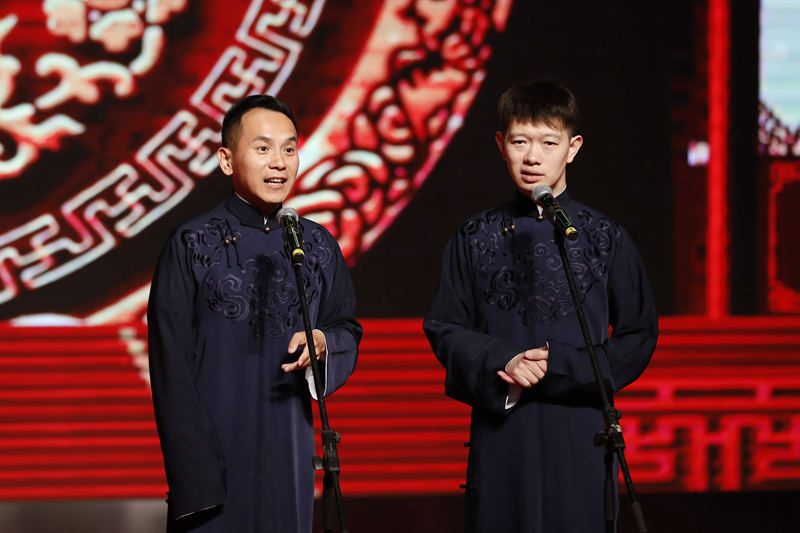 著名青年相声演员陈印泉、侯振鹏带来相声《欢声笑语》,引起台下观众阵阵欢笑和喝彩。