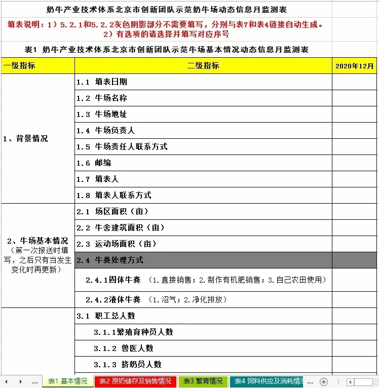 《示范牛场动态监测表》部分内容