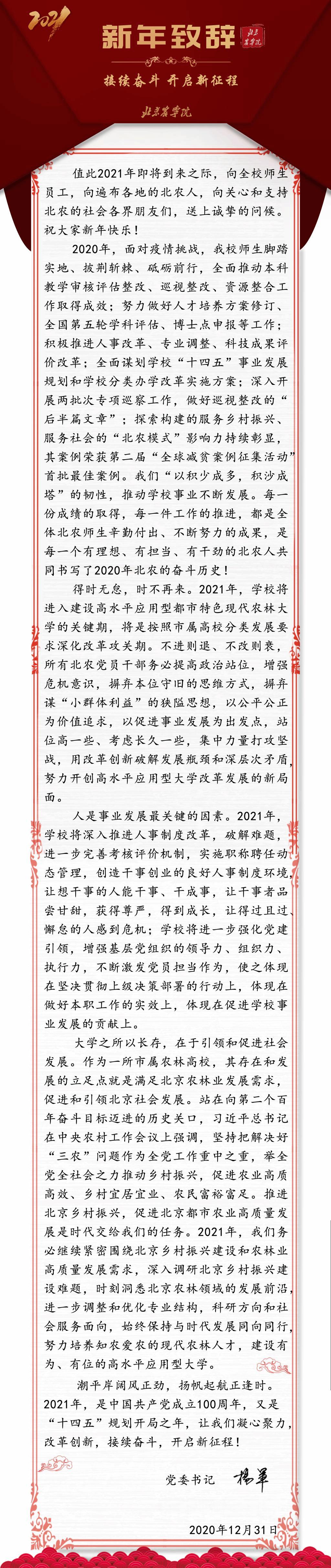 【新年致辞】致2021:接续奋斗 开启新征程