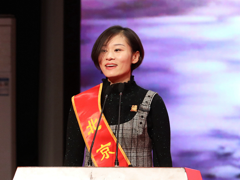 “2019年北京榜样”蒋瑶讲述了国庆70周年阅兵女民兵方队认真训练的故事。她们坚守为国受阅信念,艰苦训练、团结拼搏,圆满完成了国庆70周年阅兵任务,走出了新时代的民兵风采,走出了强国强军的气概。她说:“我爱你,我的祖国!”