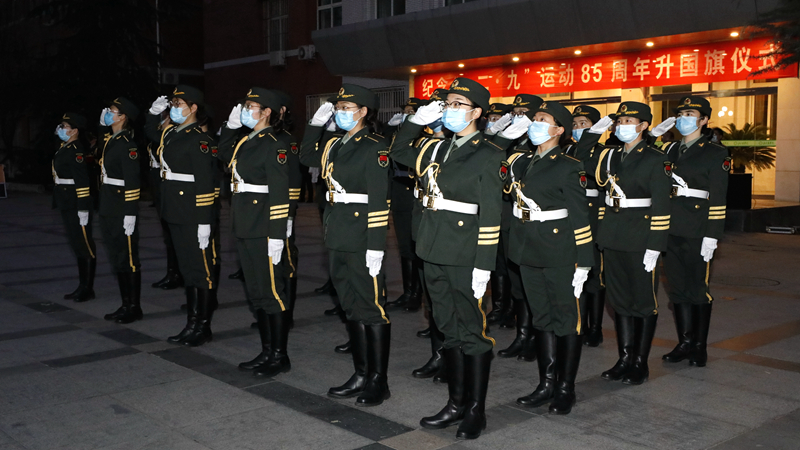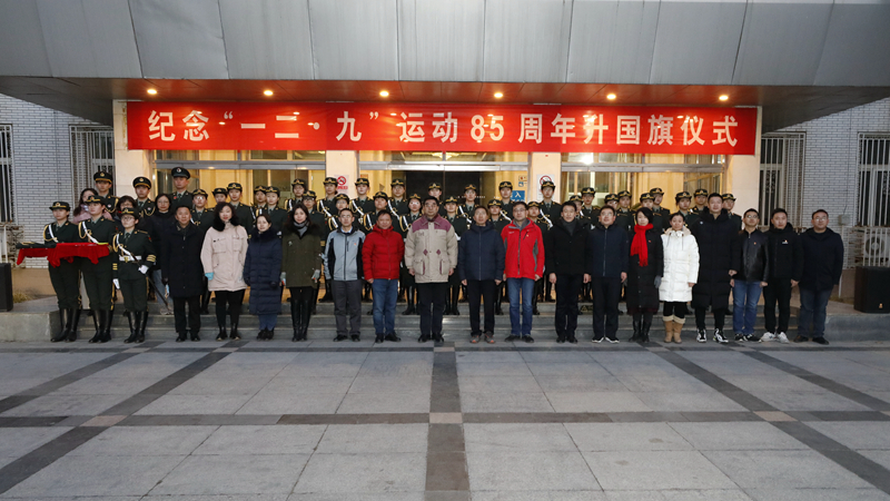 12月9日早晨7点,beat365中文官方网站纪念“一二·九”运动85周年升国旗仪式暨女子国旗班换届仪式在行政楼前隆重举行。