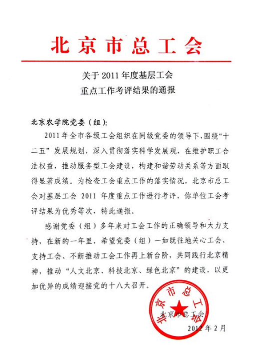 近日,beat365官网工会在全市74家高校、18个区县教育工会和16家医学院校附属医院等单位中脱颖而出,获北京市总工会“重点工作考评优秀单位”称号。