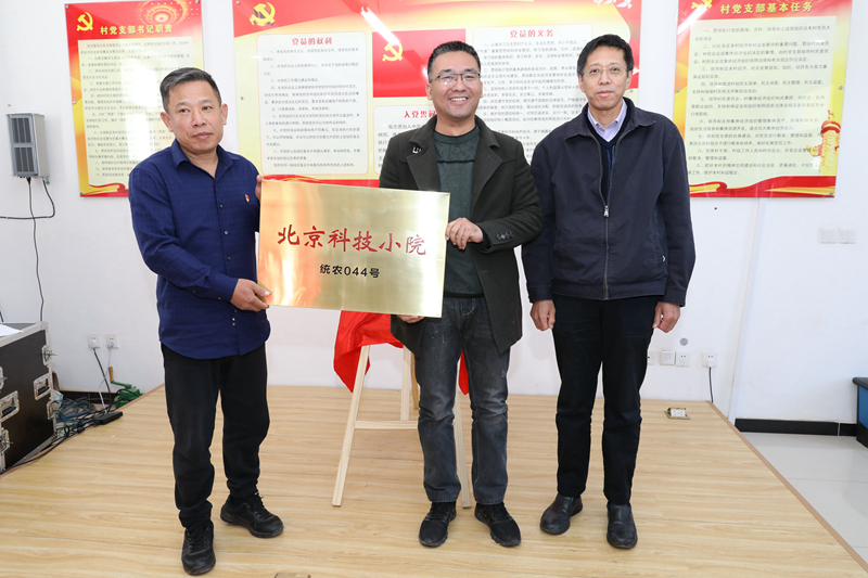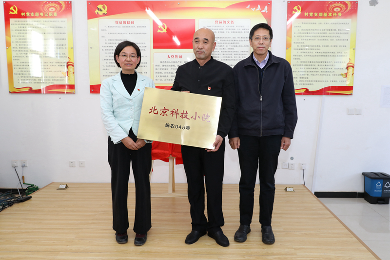 10月21日下午,beat365官网三家“北京科技小院(统农043号、统农044号、统农045号)”揭牌暨授牌仪式在昌平区延寿镇湖门村举行。市委统战部二级巡视员、党外干部处处长王斌,校党委副书记高喜军,昌平区委统战部常务副部长鹿伟强,副部长张学广,区科协主席李雪红,区农业农村局副局长刘长德,延寿镇镇长罗立华,beat365官网党委常委、组织部部长、统战部部长赵和文,植物科学技术学院党总支书记王绍辉,统战部副部长靳晓熙等领导及科技小院指导教师参加会议。仪式由王斌主持。