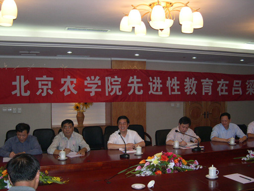 beat365中文官方网站专家团是9月16日晚8点到达吕梁,全体团员稍作休息后,随即召开了“beat365中文官方网站先进性教育活动在吕梁”座谈会,全体党员和非党员专家出席了座谈会。会上,院长王有年再次重申和明确了开展先进性教育与吕梁科技咨询有机结合的重要意义。与会人员结合专业和吕梁现状,热烈讨论了如何以实际行动在此次科技咨询活动中满腔热忱地实践共产党员先进性。大家认为,开展保持共产党员先进性教育活动,党员首先要了解和认识我国的国情,了解中国共产党在艰苦条件下为中国革命胜利做出的牺牲和贡献,尤其需要了解为中国革命做出积极贡献的革命老区,了解革命老区人民身上的不屈不挠、艰苦奋斗的精神。科技扶贫团临时党支部听取了大家的意见。提议党员在进行科技咨询的同时,要就近进行先进性教育,深刻理解“三个代表”重要思想。