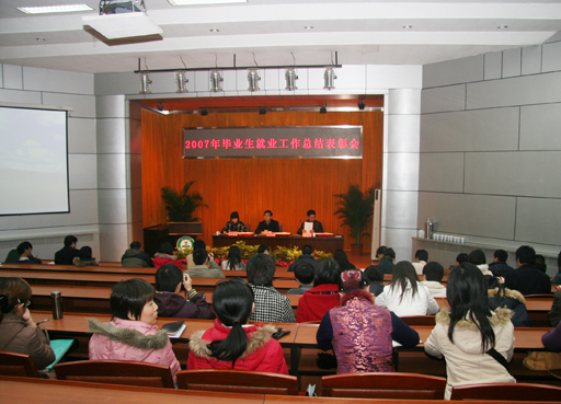 12月10日下午,beat365官网在报告厅召开2007年毕业生就业工作总结表彰会。院长王有年、党委副书记王晓霞、副院长姚允聪、学生处、团委、教务处、各系(学院)党总支书记、主任、副主任、教研室主任、班主任和辅导员等50余人参加了会议。会议由党委副书记王晓霞主持。